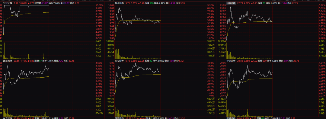 行業(yè)板塊方面,被譽為“牛市旗手”的券商板塊爆發(fā),板塊漲幅超過2%,興業(yè)證券觸及漲停,東北證券、華泰證券、國泰海通等跟漲。