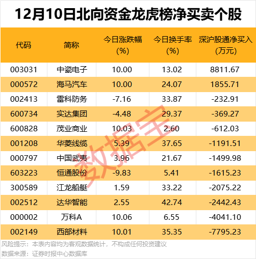 北向資金凈賣出10股,西部材料凈賣出金額居首,為7795.23萬元;萬科A、達華智能、江龍船艇均遭北向資金凈賣出超2000萬元。