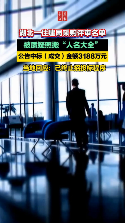 湖北一住建局采購評審名單被質疑照搬“人名大全”,當?shù)鼗貞阂呀K止招投標程序